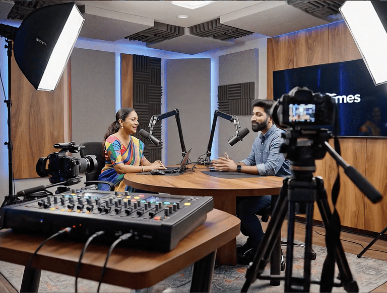 Shivamogga’s first modern podcast and AV studio, offering pro gear and affordable rates.